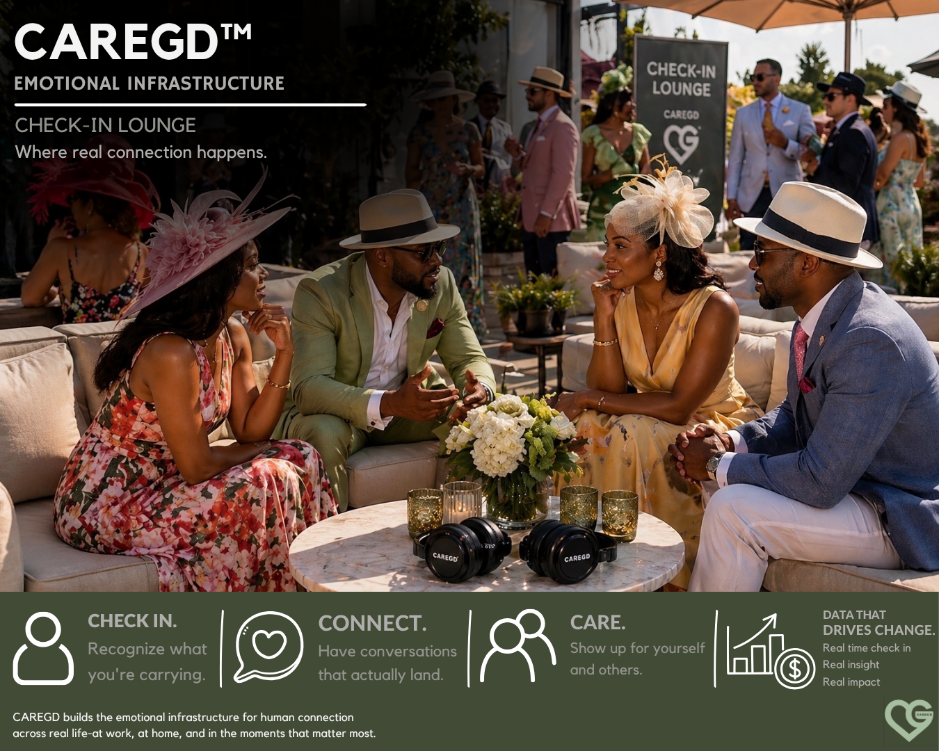 CAREGD™ is a for-profit emotional infrastructure company designed to scale how people check in across real life — at work, at home, and inside live experiences.